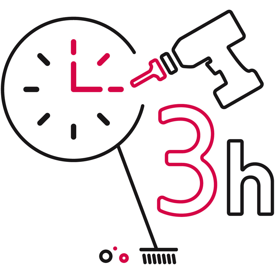 Ett normalt dörrbyte tar cirka 3 timmar. Den boende kan vara hemma. Installatören städar efter sig, det ska vara rent och snyggt efteråt. När installationen är utförd får den boende en kort genomgång om hur dörren fungerar.