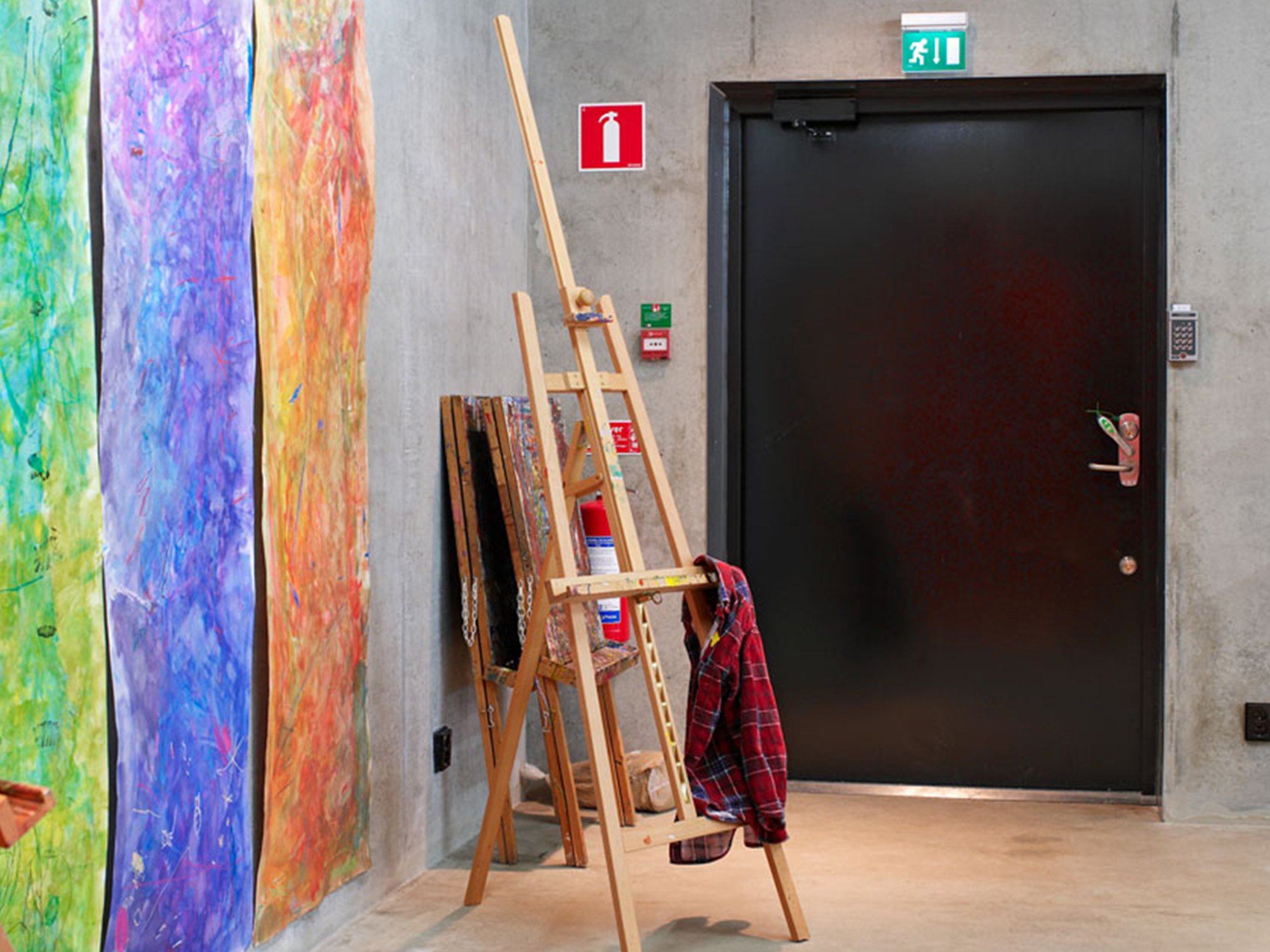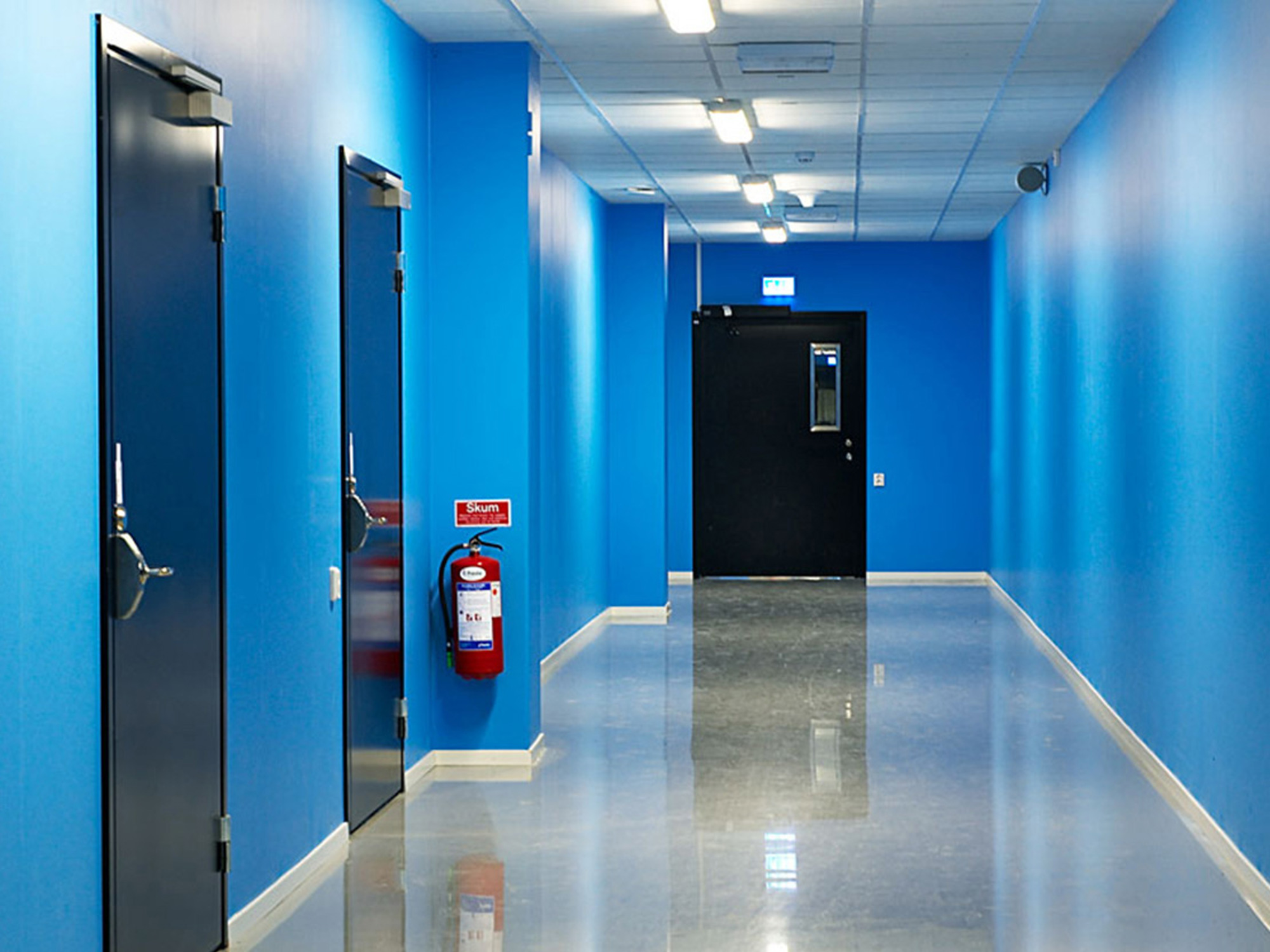 Svartmålade ståldörrar.