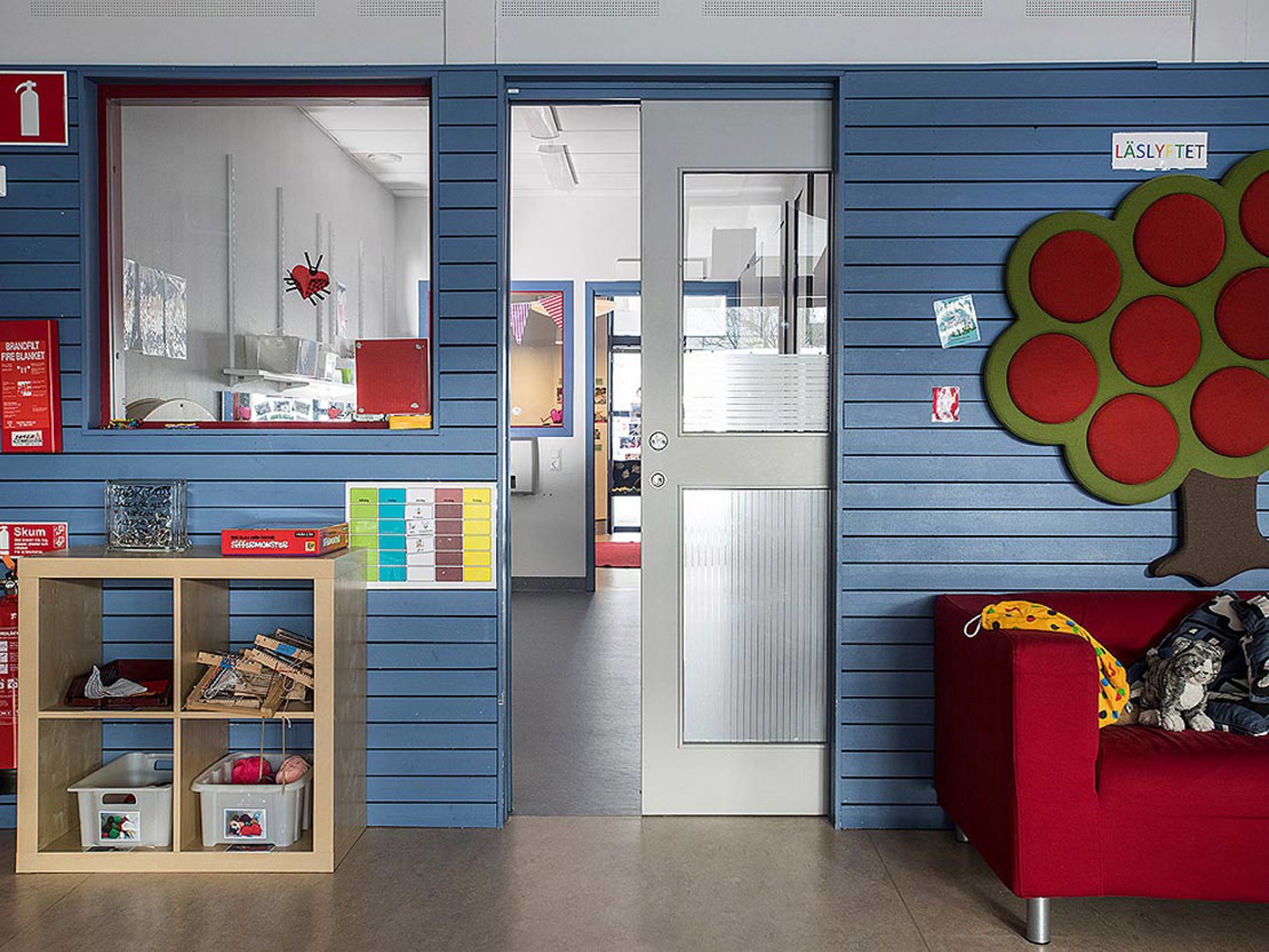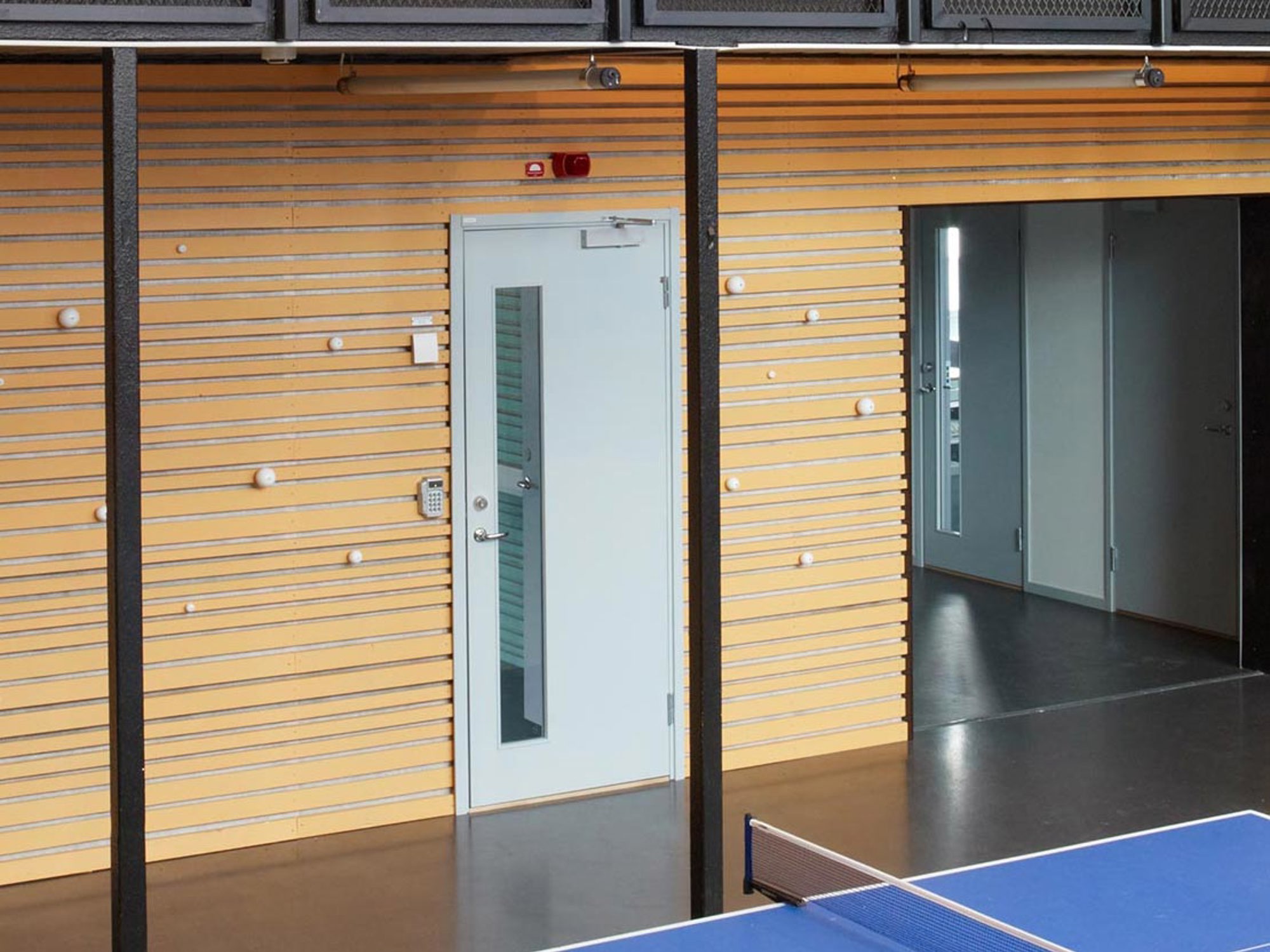 Rostfri dörr i bullerplank.