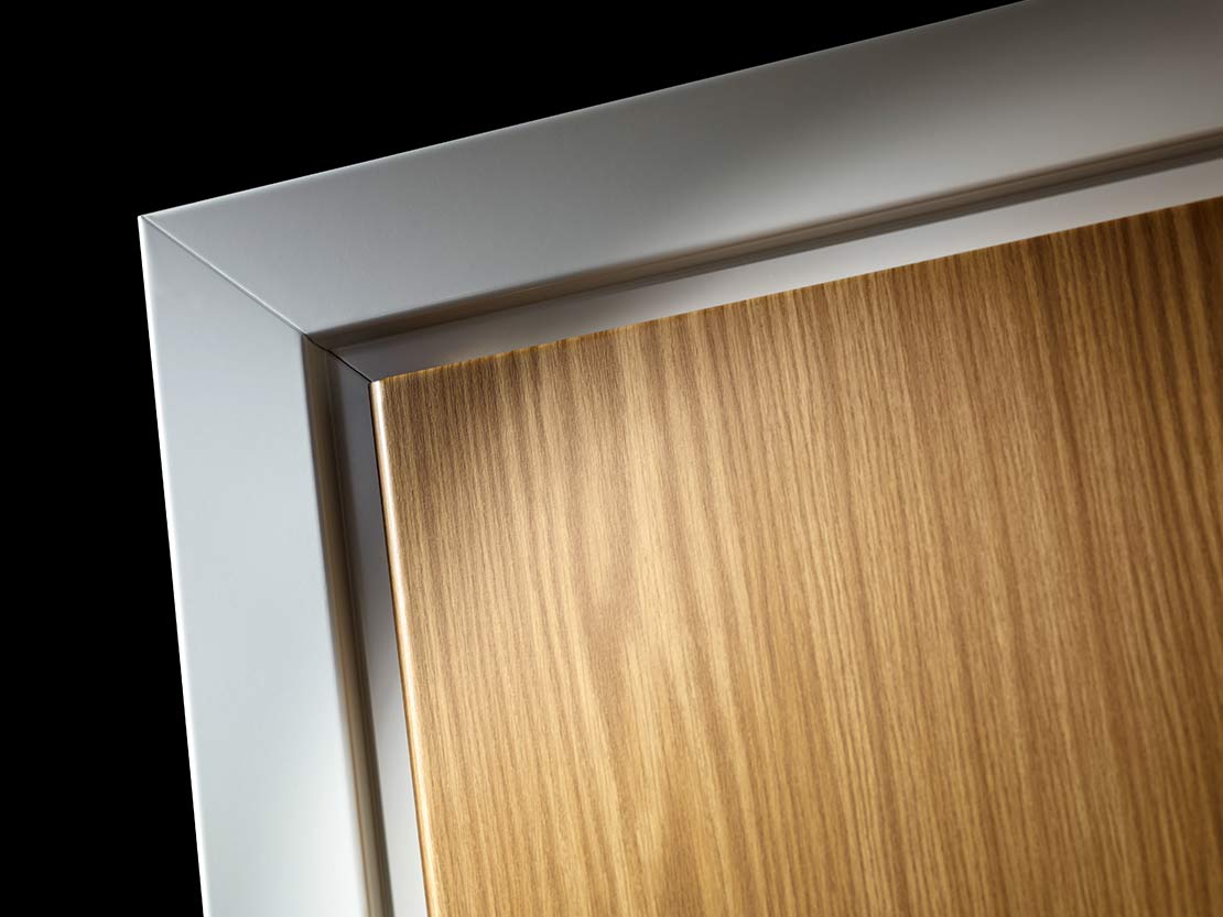 Den är en utmärkt dörr för miljöer där de estetiska kraven är lika höga som kraven på säkerhet. Den unika snedfasade överfalsen ger dörren en ombonad och bearbetad känsla. Att dörren är både säker och snygg från sidan beror även på sammanfogningen med dolda plåtkanter. Två små men viktiga detaljer som sätter fokus på dörren som en viktig del av inredningen.