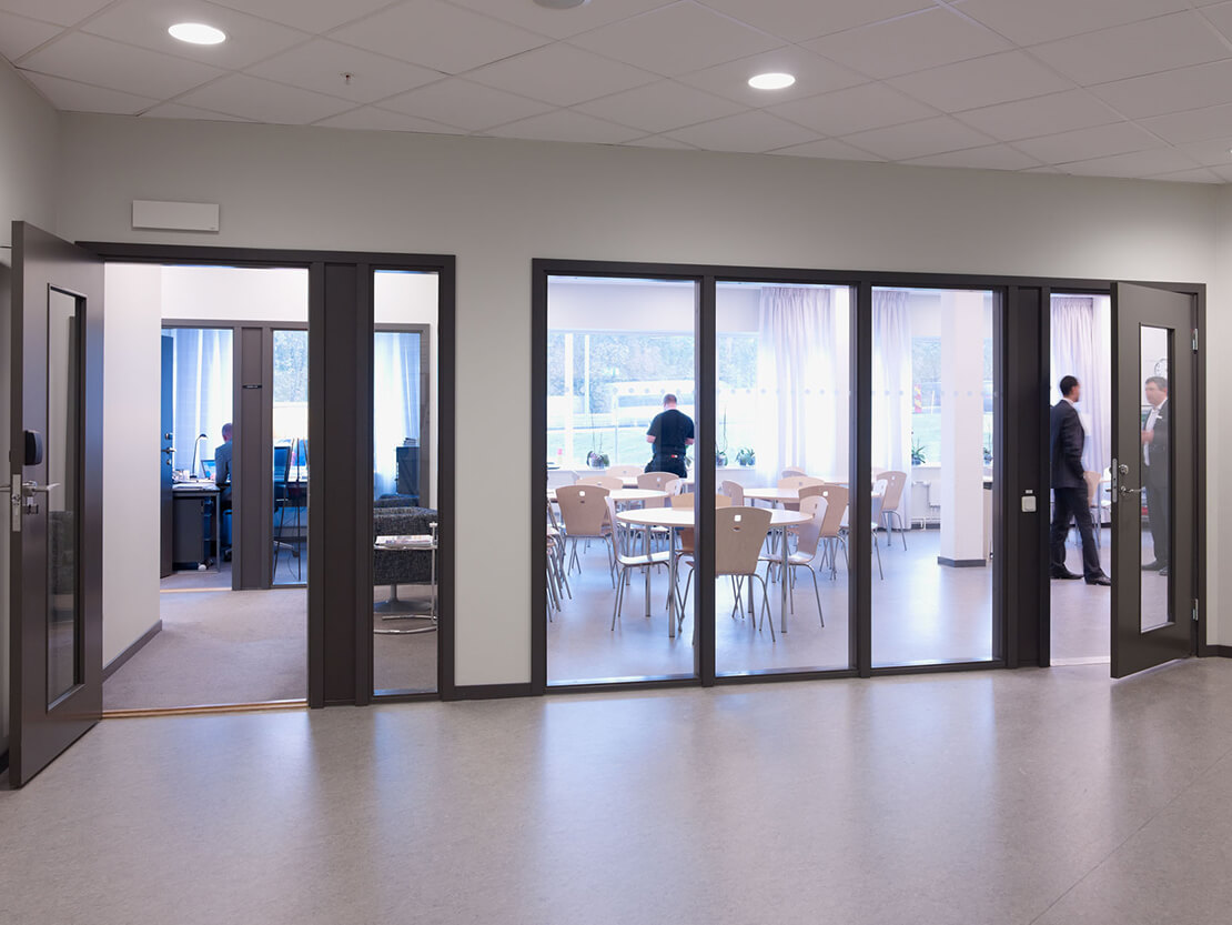 Våra träpartier är provade och typgodkända i brandklass EI30, EI60, EI260. Ljudreduktion Rw 28dB, 33dB, 38dB eller 43dB beroende på vilket glas du väljer. Glasen är personsäkerhetsglas i klass 1(B)1, 1(C)1 och 2(B)2 enligt EN 12600.